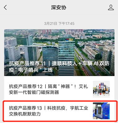 同期,宇航工業交換機上榜科技抗疫推薦產品。