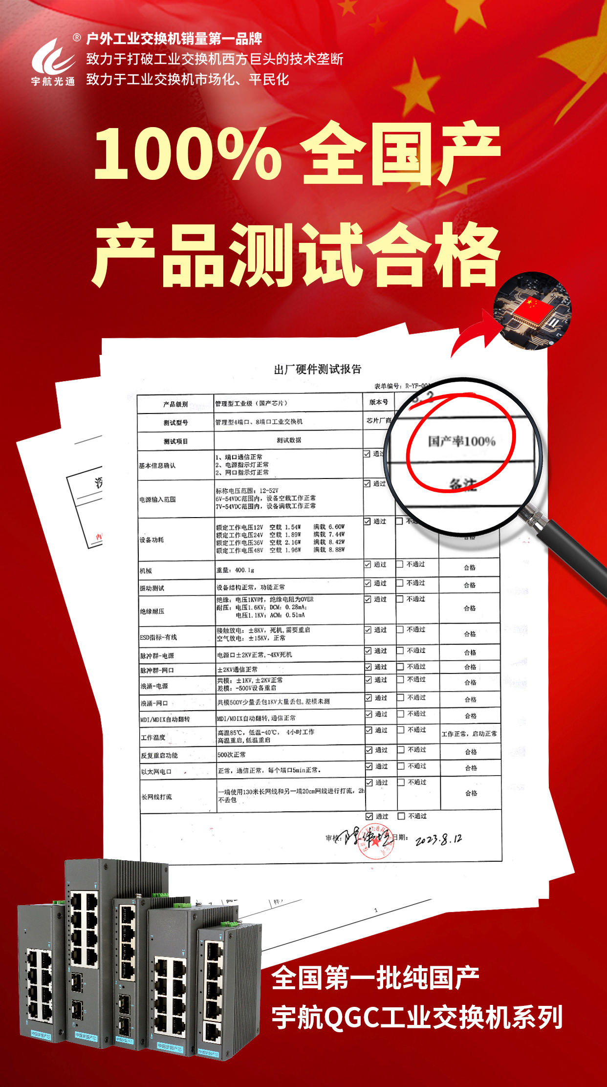 宇航工業交換機積極擁抱自主可控國策,推出國產芯片系列產品。宇航QGC工業交換機系列選用景略半導體和裕太微電子的國產芯片,助力自主科技產業發展。通過自主可控的實現,不僅提升了設備的可靠性和安全性,也為中國芯的發展添磚加瓦。