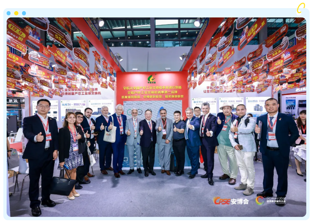 展會期間,我們很榮幸地迎來了中國國際社會公共安全博覽會組委會主席、世界數(shù)字城市大會主席、歐洲科學(xué)院院士、深安協(xié)&深交協(xié)創(chuàng)會會長楊金才等全國多地行業(yè)協(xié)會與機(jī)構(gòu)的領(lǐng)導(dǎo)和專家蒞臨交流。嘉賓們對宇航全系列全國產(chǎn)工業(yè)交換機(jī)的技術(shù)突破與規(guī)模化應(yīng)用成果給予了高度認(rèn)可,并充分肯定了我們在推動工業(yè)網(wǎng)絡(luò)自主可控、守護(hù)關(guān)鍵基礎(chǔ)設(shè)施網(wǎng)絡(luò)安全方面所做出的努力。這份認(rèn)可與鼓勵,是我們前行路上最寶貴的動力。在此,向所有關(guān)心和支持宇航工業(yè)交換機(jī)的朋友們致以最誠摯的感謝!