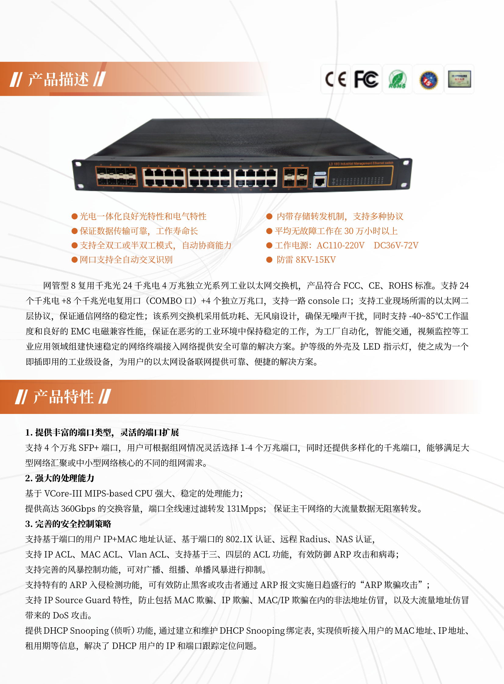 - 電信級雙電源冗余保護