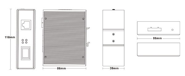 外殼:金屬材質(zhì) 安裝:DIN 卡軌式,壁掛式安裝 重量:0.36Kg 尺寸 :118 x 86 x 39mm (長 x 寬 x 高) |