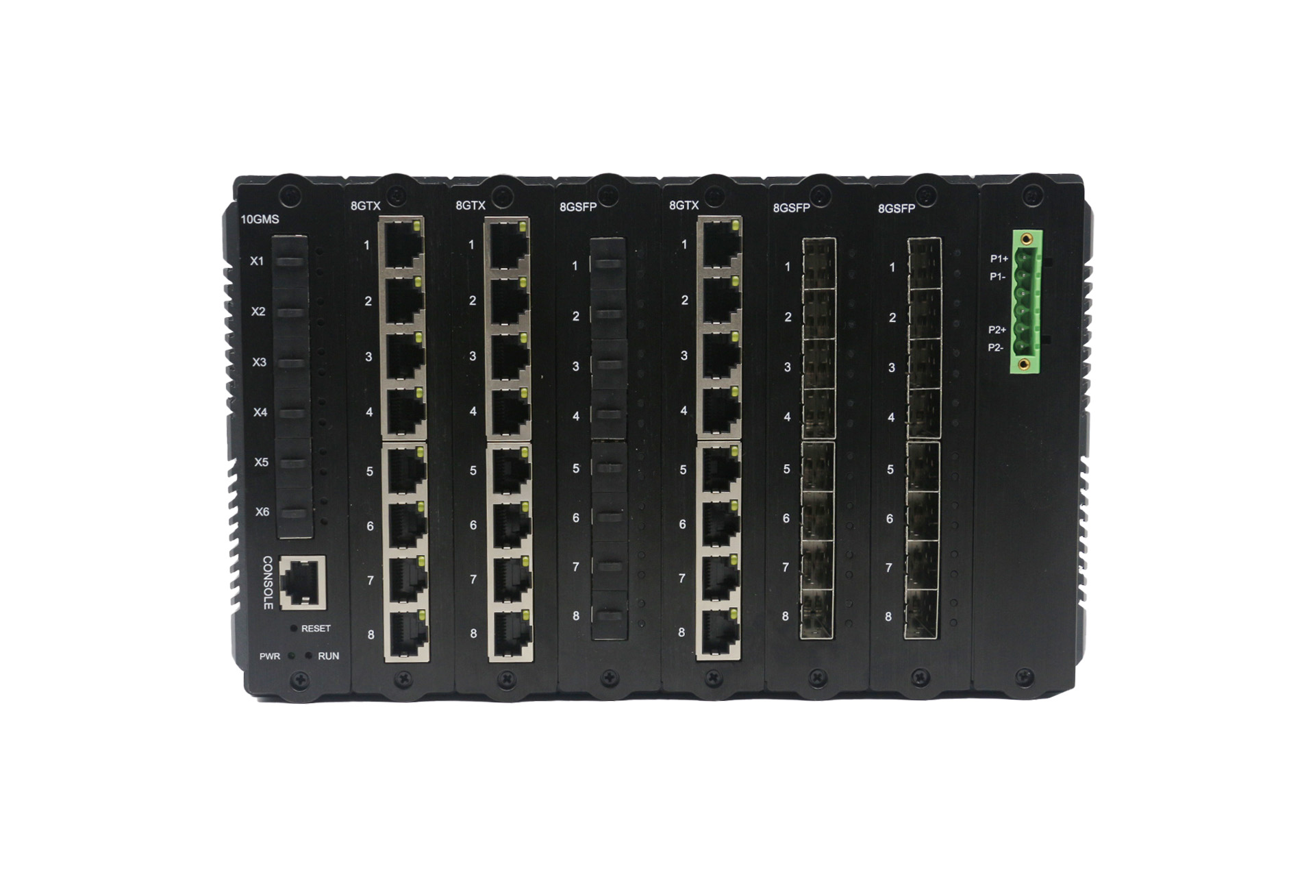 | 接口規格 | 6個萬兆SFP+光口和6個板卡卡槽,可選配8千兆SFP板卡、8千兆電口板卡 |